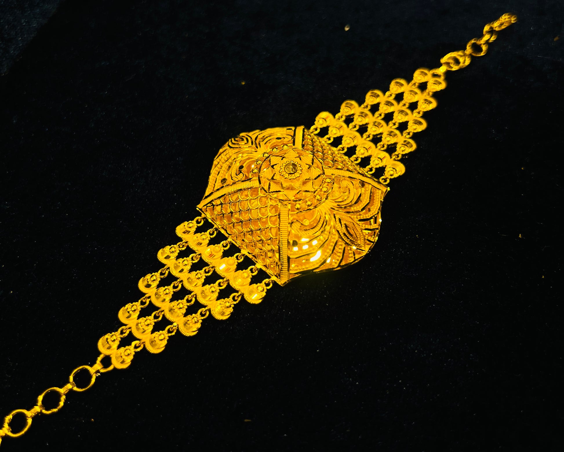 Its premium finish gives a classy, gold-like appearance while remaining lightweight and comfortable to wear. Ideal for bridal functions, weddings, parties, and special occasions, this Forming Mantasha blends tradition with timeless elegance.